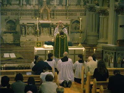 - a Santa Missa celebrada em Versus Deum ("Voltado para Deus", com sacerdote e povo voltados para a mesma direção, como o Cardeal Ratzinger, hoje Papa Bento XVI, recomenda que se faça no seu livro "Introdução ao Espírito da Liturgia")